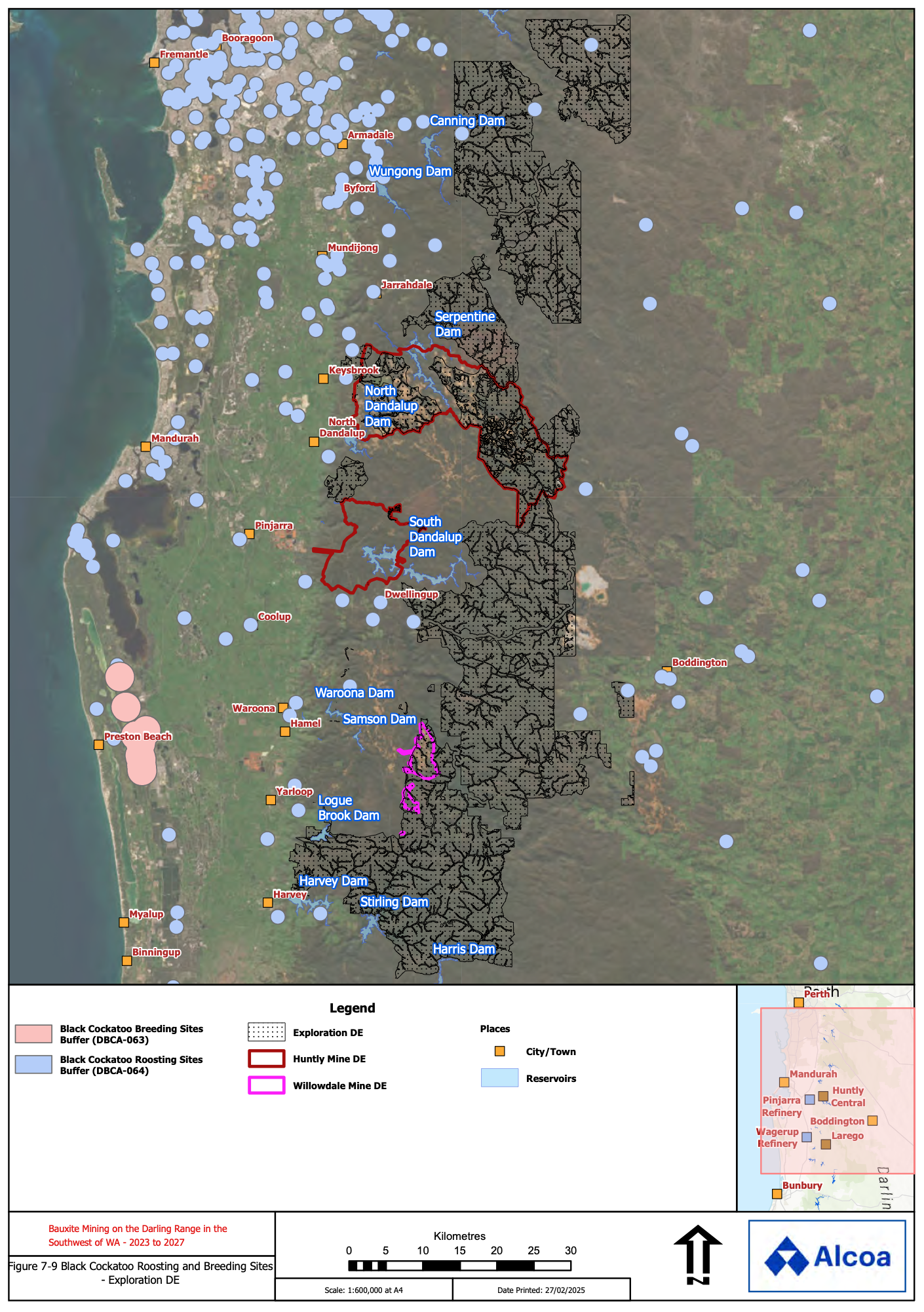 An Alcoa map included in DMPE’s letter starkly showed the near-absence of cockatoo roosting sites in Alcoa’s exploration and mining sites from DBCA’s database.