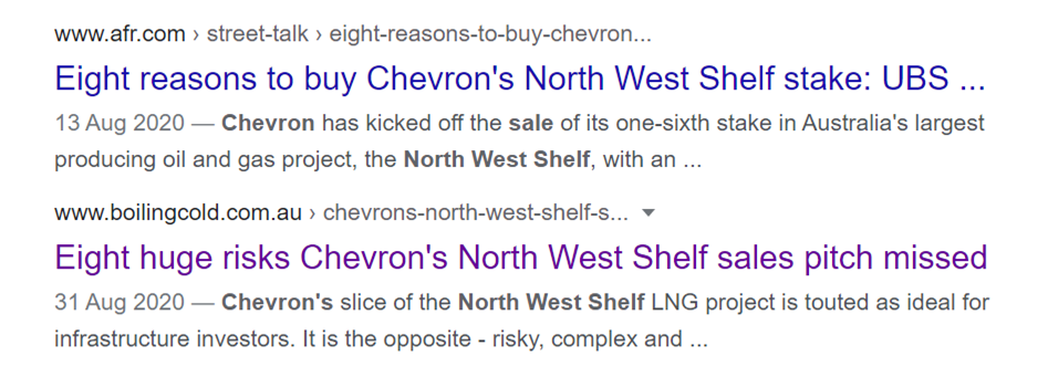 In a surprise decision Chevron decided to sells out of the North West Shelf and its bank spruiked a sales pitch.