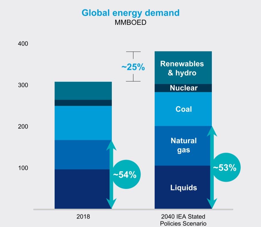 Speaking to Wall Street analysts last night Chevron chief executive Mike Wirth said with current policy and technology trends the International Energy Agency predicted energy demand would increase by a quarter to 2040 and oil and gas would maintain its market share.