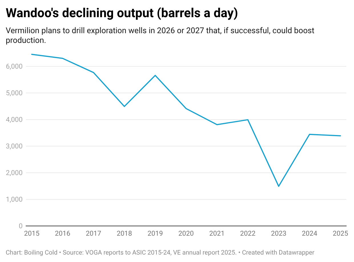 Vermilion slashed the book value of Wandoo by two-thirds to $84 million in its 2025 annual report, released on Thursday, Australian time, which said the price-related impairment was "not an indication of deterioration in the performance or outlook" of Wandoo.